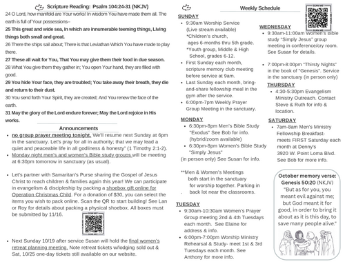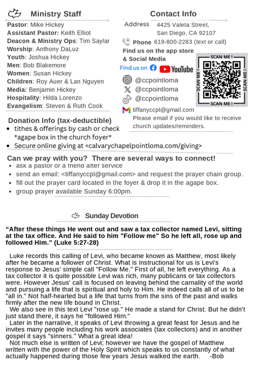 annually we host a 5-day vacation bible school event for pre-k through 5 grades. See Lan and Roy for details.
